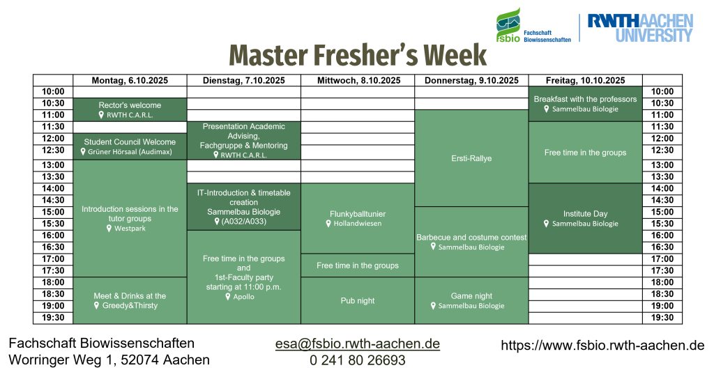 If you have any questions about the Fresher’s Week or the start of your studies, feel free to email us at esa@fsbio.rwth-aachen.de.